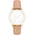 Dieses Michael Kors Uhrarmband ist aus leder gefertigt und wird mit druckstifte an der Uhr befestigt. Das Band hat eine Breite von 18 mm und wird mit einer dornschließe geschlossen. Das Band hat eine gerade Halterung, was bedeutet, dass dieses Band für alle Michael Korsuhren mit einer geraden Halterung geeignet ist.