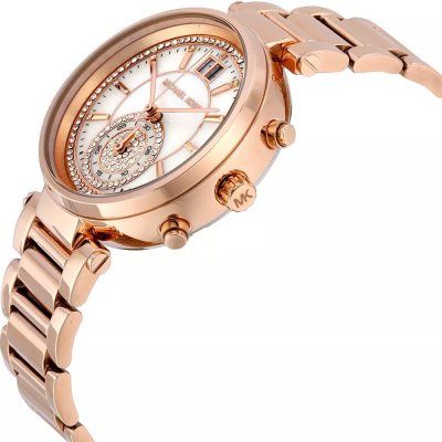 Diese Michael Kors Uhr hat ein Edelstahl Gehäuse mit einem Durchmesser von 39 mm und ist mit einem Armband aus Metall versehen. In der Uhr arbeitet ein Ronda Uhrwerk. Das Glas der Uhr besteht aus Mineral - Glas.