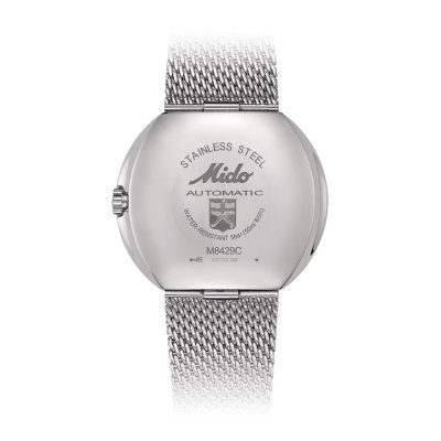 Diese MIDO Uhr hat ein Edelstahl Gehäuse mit einem Durchmesser von 37 mm und ist mit einem Armband aus Edelstahl versehen. In der Uhr arbeitet ein ETA Uhrwerk. Das Glas der Uhr besteht aus Hesalite - Glas.