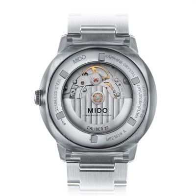 Diese MIDO Uhr hat ein Edelstahl Gehäuse mit einem Durchmesser von 42 mm und ist mit einem Armband aus Edelstahl versehen. In der Uhr arbeitet ein ETA Uhrwerk. Das Glas der Uhr besteht aus Sapphir - Glas.