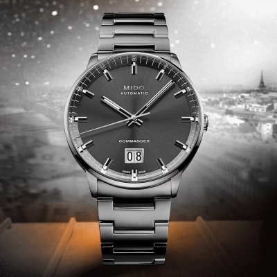 Die Commander-Serie wurde 1995 ins Leben gerufen und ist seitdem das Herzstück der MIDO-Kollektion. Die Commander Big Date ist genau das, was Sie von einer Uhr mit großem Datumsfenster erwarten. Das Datumsfenster bei 6 Uhr steht im Mittelpunkt, das Layout des Zifferblatts konzentriert sich auf seine eigentliche Funktion. Ein rundes Gehäuse mit schlanker Lünette und abgeschrägter Minutenskala umrahmt das Zifferblatt mit Sonnenschliff. Klar definierte Zeiger und applizierte Indizes mit einer kleinen SuperLuminova-Beschichtung unterstreichen den praktischen Charakter der Uhr, die von einem Schweizer Automatikwerk mit einer beeindruckenden Gangreserve von bis zu 80 Stunden angetrieben wird.