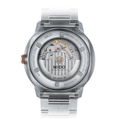 Diese MIDO Uhr hat ein Edelstahl Gehäuse mit einem Durchmesser von 42 mm und ist mit einem Armband aus Edelstahl versehen. In der Uhr arbeitet ein ETA Uhrwerk. Das Glas der Uhr besteht aus Sapphir - Glas.