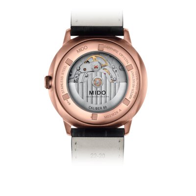 Diese MIDO Uhr hat ein Edelstahl Gehäuse mit einem Durchmesser von 42 mm und ist mit einem Armband aus Leder versehen. In der Uhr arbeitet ein ETA Uhrwerk. Das Glas der Uhr besteht aus Sapphir - Glas.
