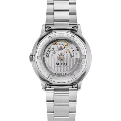 Diese MIDO Uhr hat ein Edelstahl Gehäuse mit einem Durchmesser von 40 mm und ist mit einem Armband aus Edelstahl versehen. In der Uhr arbeitet ein ETA Uhrwerk. Das Glas der Uhr besteht aus Doppel antireflex Saphirglas - Glas.