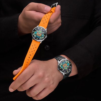 Die Mido Commander-Uhrenserie gibt es bereits seit 1959. Im Laufe der Jahre wurden die Uhren immer wieder aktualisiert und natürlich mit den neuesten technischen Innovationen ausgestattet. Die Commander Gradient verfügt über ein spezielles Zifferblatt aus transparentem Acryl, das einen rauchigen Farbverlauf aufweist, der zum Rand hin immer undurchsichtiger wird. So ist das Innenleben der Uhr durch das Zifferblatt hindurch sichtbar - wenn auch von einem geheimnisvollen Farbeffekt umhüllt, während das Datum bei 3 Uhr und die stabförmigen Zeiger perfekt zur Geltung kommen. Angetrieben wird die Uhr von einem Automatikwerk Kaliber 80 mit einer beeindruckenden Gangreserve von 80 Stunden! Dieses Uhrwerk mit seinem wunderschön "guillochierten" Rotor ist nicht nur von der Vorderseite, sondern auch von der Rückseite der Uhr aus sichtbar.