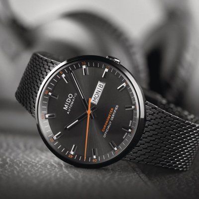 Diese MIDO Uhr hat ein Edelstahl Gehäuse mit einem Durchmesser von 42 mm und ist mit einem Armband aus Edelstahl versehen. In der Uhr arbeitet ein ETA Uhrwerk. Das Glas der Uhr besteht aus Sapphir - Glas.