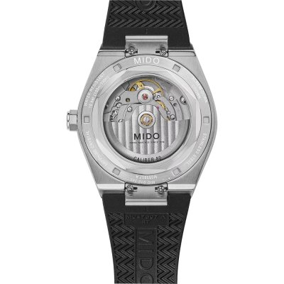 Diese MIDO Uhr hat ein Edelstahl Gehäuse mit einem Durchmesser von 40 mm und ist mit einem Armband aus Kautschuk versehen. In der Uhr arbeitet ein ETA Uhrwerk. Das Glas der Uhr besteht aus Doppel antireflex Saphirglas - Glas.