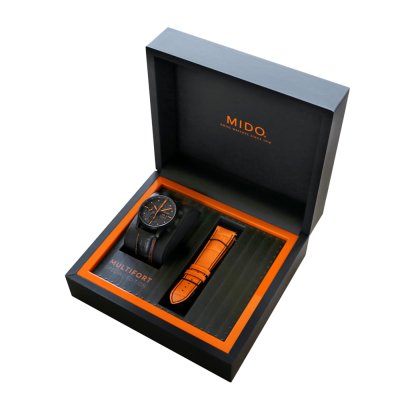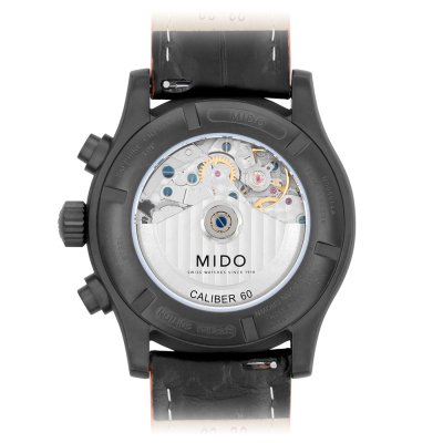 Diese MIDO Uhr hat ein Edelstahl Gehäuse mit einem Durchmesser von 44 mm und ist mit einem Armband aus Leder versehen. In der Uhr arbeitet ein ETA Uhrwerk. Das Glas der Uhr besteht aus Sapphir - Glas.