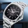 Diese MIDO Uhr hat ein Edelstahl Gehäuse mit einem Durchmesser von 34.2 mm und ist mit einem Armband aus Edelstahl versehen. In der Uhr arbeitet ein ETA Uhrwerk. Das Glas der Uhr besteht aus Sapphir - Glas.