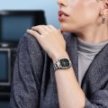 Die Multifort TV 35 ist die Damenversion der bekannten Mido-Multifort-Kollektion mit ihrem unverwechselbaren, Old-School TV-förmigen Gehäuse. Dank ihres Automatikwerks Kaliber 72 mit 72 Stunden Gangreserve konnte die Dicke der Uhr auf knapp über 9 mm begrenzt werden, was sie zu einer sehr angenehm zu tragenden Uhr macht. Das Zifferblatt bietet eine Mischung aus den charakteristischen Designelementen der Kollektion: abgerundete Ecken, eingelassene Leuchtindizes, Stabzeiger und ein dezenter Kronenschutz. Die Uhren dieser Kollektion werden alle mit einem zusätzlichen Armband oder einem Armband mit Schnellverschluss für einen schnellen und einfachen Bandwechsel geliefert.