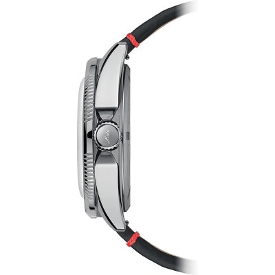 1996 brachte Mido den Worldtimer auf den Markt, die erste analoge Uhr, die mit einer sehr einfachen Bedienung sofort die lokale Zeitzone überall auf der Welt anzeigte. Die Ocean Star Worldtimer ist von dieser Uhr inspiriert, kombiniert mit dem Stil der 1970er Jahre. Die Uhr hat ein markantes, sehr gut ablesbares Zifferblatt. Die Oberfläche ist silberfarben und mit einer dezenten, antireflektierenden "Velours"-Beschichtung versehen, die die Ablesbarkeit verbessert. Das charakteristische Merkmal der Uhr ist der rot-schwarz karierte Ring um das Zifferblatt. Dieses grafische Element ist einer Mido-Uhr aus den 1970er Jahren nachempfunden und verleiht der Uhr einen fröhlichen Retro-Charakter. Die einseitig drehbare Lünette ist mit einer schwarzen Aluminiumeinlage versehen, auf der die Namen der größten Städte der Welt stehen, die jeweils eine andere Zeitzone repräsentieren. So kann der Benutzer die Zeit zu Hause leicht mit der lokalen Zeitzone vergleichen. Das Bundarmband kann auf zwei Arten getragen werden. Der untere Teil ist abnehmbar, so dass die Uhr an ihrem normalen schwarzen Lederarmband getragen werden kann. Außerdem ist die Uhr 20 ATM wasserdicht, was sie zu einem vielseitigen und zuverlässigen Reisebegleiter macht.