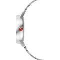 Diese Mondaine Uhr hat ein Edelstahl Gehäuse mit einem Durchmesser von 30 mm und ist mit einem Armband aus Edelstahl versehen. In der Uhr arbeitet ein Ronda Uhrwerk. Das Glas der Uhr besteht aus Sapphir - Glas.