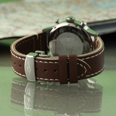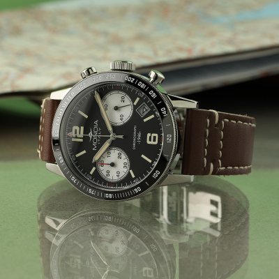 Diese Mondia Uhr hat ein Edelstahl Gehäuse mit einem Durchmesser von 40 mm und ist mit einem Armband aus Leder versehen. In der Uhr arbeitet ein Miyota Uhrwerk. Das Glas der Uhr besteht aus Mineral - Glas.