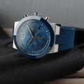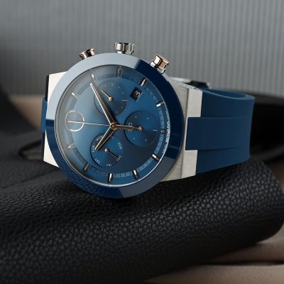 Diese Movado Uhr hat ein Edelstahl Gehäuse mit einem Durchmesser von 44 mm und ist mit einem Armband aus Kautschuk versehen. In der Uhr arbeitet ein Ronda Uhrwerk. Das Glas der Uhr besteht aus K1 Mineral - Glas.
