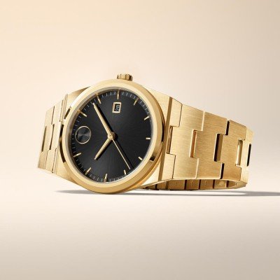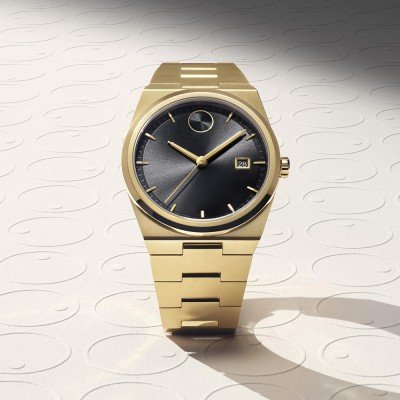 Diese Movado Uhr hat ein Edelstahl Gehäuse mit einem Durchmesser von 40 mm und ist mit einem Armband aus Edelstahl versehen.
