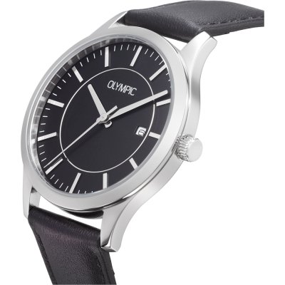 Diese Olympic Uhr hat ein Edelstahl Gehäuse mit einem Durchmesser von 40 mm und ist mit einem Armband aus Leder versehen. In der Uhr arbeitet ein Miyota Uhrwerk. Das Glas der Uhr besteht aus Mineral - Glas.