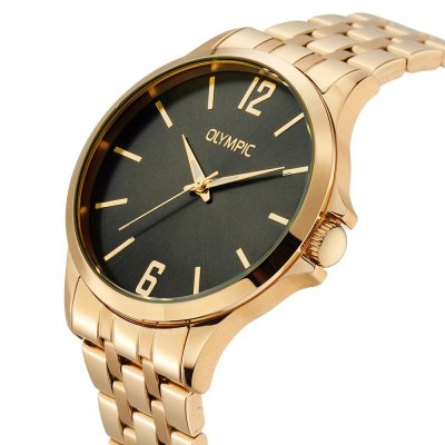 Diese Olympic Uhr hat ein Edelstahl Gehäuse mit einem Durchmesser von 40 mm und ist mit einem Armband aus Edelstahl versehen. In der Uhr arbeitet ein Miyota Uhrwerk. Das Glas der Uhr besteht aus Mineral - Glas.