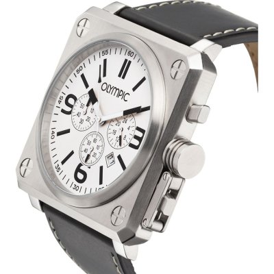 Diese Olympic Uhr hat ein Edelstahl Gehäuse mit einem Durchmesser von 46 mm und ist mit einem Armband aus Leder versehen. In der Uhr arbeitet ein Miyota Uhrwerk. Das Glas der Uhr besteht aus Mineral - Glas.
