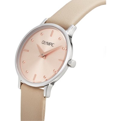 Diese Olympic Uhr hat ein Edelstahl Gehäuse mit einem Durchmesser von 26 mm und ist mit einem Armband aus Leder versehen. In der Uhr arbeitet ein Seiko Instruments Inc. Uhrwerk. Das Glas der Uhr besteht aus Mineral - Glas.