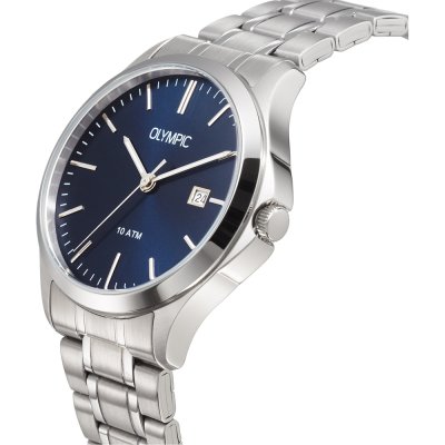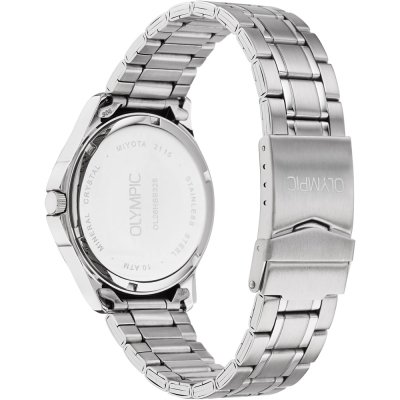 Diese Olympic Uhr hat ein Edelstahl Gehäuse mit einem Durchmesser von 39 mm und ist mit einem Armband aus Edelstahl versehen. In der Uhr arbeitet ein Miyota Uhrwerk. Das Glas der Uhr besteht aus Mineral - Glas.