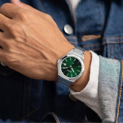Diese Olympic Uhr hat ein Edelstahl Gehäuse mit einem Durchmesser von 44 mm und ist mit einem Armband aus Edelstahl versehen. In der Uhr arbeitet ein Miyota Uhrwerk. Das Glas der Uhr besteht aus Sapphir - Glas.