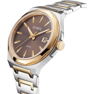 Diese Olympic Uhr hat ein Edelstahl Gehäuse mit einem Durchmesser von 44 mm und ist mit einem Armband aus Edelstahl versehen. In der Uhr arbeitet ein Miyota Uhrwerk. Das Glas der Uhr besteht aus Sapphir - Glas.