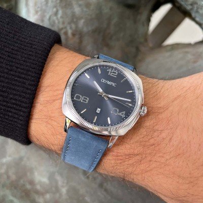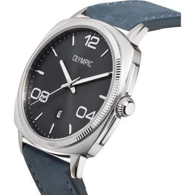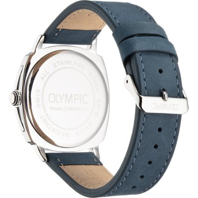 Diese Olympic Uhr hat ein Edelstahl Gehäuse mit einem Durchmesser von 42 mm und ist mit einem Armband aus Leder versehen. In der Uhr arbeitet ein Miyota Uhrwerk. Das Glas der Uhr besteht aus Mineral - Glas.