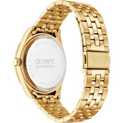 Diese Olympic Uhr hat ein Edelstahl Gehäuse mit einem Durchmesser von 40 mm und ist mit einem Armband aus Edelstahl versehen. In der Uhr arbeitet ein Miyota Uhrwerk. Das Glas der Uhr besteht aus Mineral - Glas.