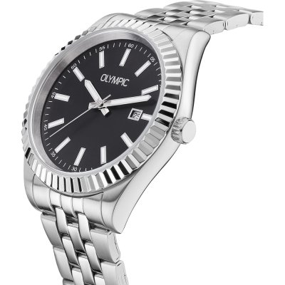 Diese Olympic Uhr hat ein Edelstahl Gehäuse mit einem Durchmesser von 40 mm und ist mit einem Armband aus Edelstahl versehen. In der Uhr arbeitet ein Miyota Uhrwerk. Das Glas der Uhr besteht aus Mineral - Glas.