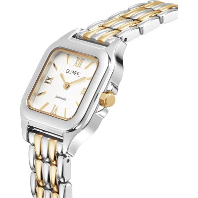 Diese Olympic Uhr hat ein Edelstahl Gehäuse mit einem Durchmesser von 26 mm und ist mit einem Armband aus Edelstahl versehen. In der Uhr arbeitet ein Miyota Uhrwerk. Das Glas der Uhr besteht aus Sapphir - Glas.