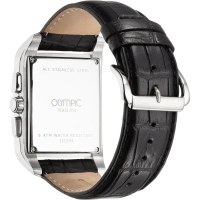 Diese Olympic Uhr hat ein Edelstahl Gehäuse mit einem Durchmesser von 39 mm und ist mit einem Armband aus Leder versehen. In der Uhr arbeitet ein Miyota Uhrwerk. Das Glas der Uhr besteht aus Mineral - Glas.