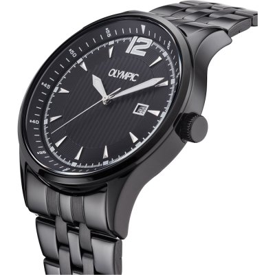 Diese Olympic Uhr hat ein Edelstahl Gehäuse mit einem Durchmesser von 43 mm und ist mit einem Armband aus Edelstahl versehen. In der Uhr arbeitet ein Miyota Uhrwerk. Das Glas der Uhr besteht aus Mineral - Glas.