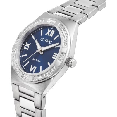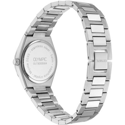 Diese Olympic Uhr hat ein Edelstahl Gehäuse mit einem Durchmesser von 29 mm und ist mit einem Armband aus Edelstahl versehen. In der Uhr arbeitet ein Miyota Uhrwerk. Das Glas der Uhr besteht aus Sapphir - Glas.