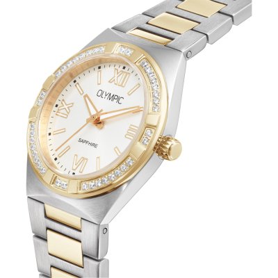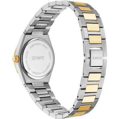 Diese Olympic Uhr hat ein Edelstahl Gehäuse mit einem Durchmesser von 29 mm und ist mit einem Armband aus Edelstahl versehen. In der Uhr arbeitet ein Miyota Uhrwerk. Das Glas der Uhr besteht aus Sapphir - Glas.