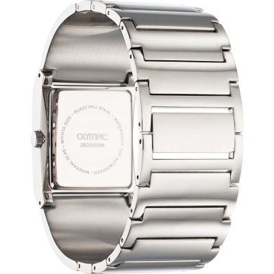 Diese Olympic Uhr hat ein Edelstahl Gehäuse mit einem Durchmesser von 28 mm und ist mit einem Armband aus Edelstahl versehen. In der Uhr arbeitet ein Miyota Uhrwerk. Das Glas der Uhr besteht aus Mineral - Glas.