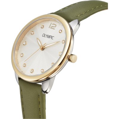 Diese Olympic Uhr hat ein Edelstahl Gehäuse mit einem Durchmesser von 31 mm und ist mit einem Armband aus Leder versehen. In der Uhr arbeitet ein Miyota Uhrwerk. Das Glas der Uhr besteht aus Mineral - Glas.