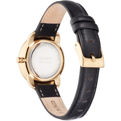 Diese Olympic Uhr hat ein Edelstahl Gehäuse mit einem Durchmesser von 31 mm und ist mit einem Armband aus Leder versehen. In der Uhr arbeitet ein Miyota Uhrwerk. Das Glas der Uhr besteht aus Mineral - Glas.