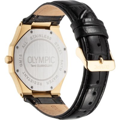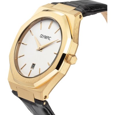 Diese Olympic Uhr hat ein Edelstahl Gehäuse mit einem Durchmesser von 40 mm und ist mit einem Armband aus Leder versehen. In der Uhr arbeitet ein Miyota Uhrwerk. Das Glas der Uhr besteht aus Mineral - Glas.