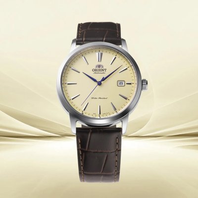 Diese Orient Uhr hat ein Edelstahl Gehäuse mit einem Durchmesser von 42 mm und ist mit einem Armband aus Leder versehen. In der Uhr arbeitet ein Orient Uhrwerk. Das Glas der Uhr besteht aus Mineral - Glas.
