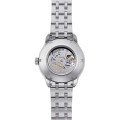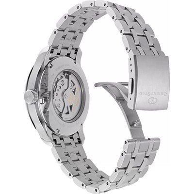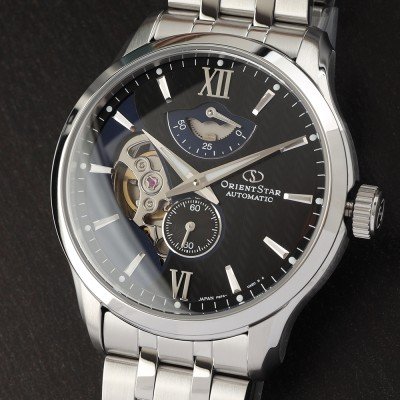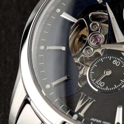 Diese schöne Uhr heißt nicht umsonst 'Layered Skeleton'. Sowohl die Hilfszifferblätter für die kleine Sekunde und die Gangreserve als auch der Teil mit dem Paisley-förmigen "offenen Herzen" sind gegenüber dem Zifferblatt zurückgesetzt. Das Zifferblatt selbst hat einen subtilen Glanz und ein Fischgrätenmuster, das an einen luxuriösen Tweed-Anzug mit Cupra-Futter erinnert. Die kontrastierenden Texturen, das geschichtete Zifferblatt und die erhabenen Indexe verleihen der Uhr Tiefe, die durch den Blick auf das wunderschöne Uhrwerk F6F44 noch verstärkt wird. Dieses selbst entwickelte Automatikwerk kann auch von Hand aufgezogen werden und verfügt über eine Gangreserve von 50 Stunden. Die Verarbeitung ist - wie wir es von Orient Star gewohnt sind - exzellent, mit einem kombinierten gebürstet-polierten Gliederarmband und entspiegeltem Saphirglas.