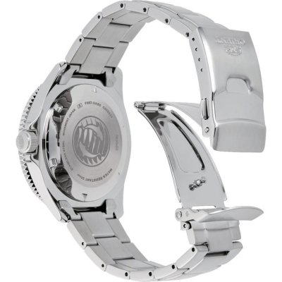 Diese Orient Uhr hat ein Edelstahl Gehäuse mit einem Durchmesser von 44 mm und ist mit einem Armband aus Edelstahl versehen. In der Uhr arbeitet ein Orient Uhrwerk. Das Glas der Uhr besteht aus Mineral - Glas.