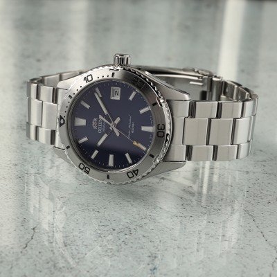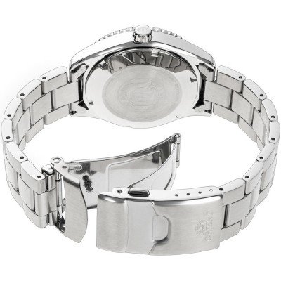 Diese Orient Uhr hat ein Edelstahl Gehäuse mit einem Durchmesser von 40 mm und ist mit einem Armband aus Metall versehen. In der Uhr arbeitet ein Orient Uhrwerk. Das Glas der Uhr besteht aus Mineral - Glas.
