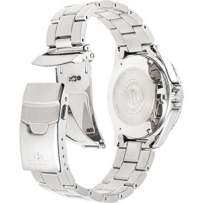 Diese Orient Uhr hat ein Edelstahl Gehäuse mit einem Durchmesser von 41.8 mm und ist mit einem Armband aus Metall versehen. In der Uhr arbeitet ein Orient Uhrwerk. Das Glas der Uhr besteht aus Sapphir - Glas.