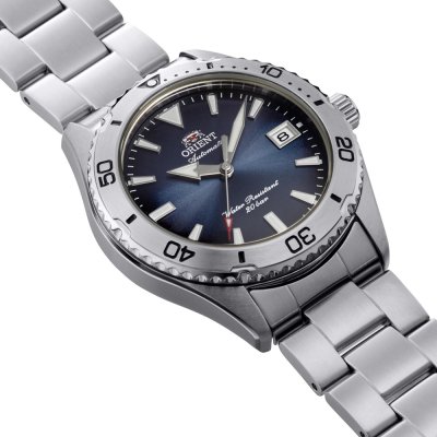Diese Orient Uhr hat ein Edelstahl Gehäuse mit einem Durchmesser von 39 mm und ist mit einem Armband aus Edelstahl versehen. In der Uhr arbeitet ein Orient Uhrwerk. Das Glas der Uhr besteht aus Sapphir - Glas.