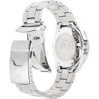 Diese Orient Uhr hat ein Edelstahl Gehäuse mit einem Durchmesser von 41.8 mm und ist mit einem Armband aus Edelstahl versehen. In der Uhr arbeitet ein Orient Uhrwerk. Das Glas der Uhr besteht aus Sapphir - Glas.