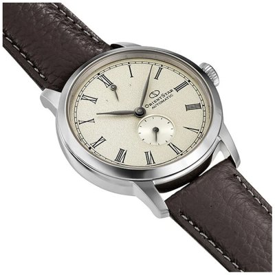Diese Orient Uhr hat ein Edelstahl Gehäuse mit einem Durchmesser von 39 mm und ist mit einem Armband aus Leder versehen. In der Uhr arbeitet ein Epson Uhrwerk. Das Glas der Uhr besteht aus Mineral - Glas.