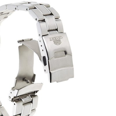 Diese Orient Uhr hat ein Edelstahl Gehäuse mit einem Durchmesser von 41.5 mm und ist mit einem Armband aus Metall versehen. In der Uhr arbeitet ein Orient Uhrwerk. Das Glas der Uhr besteht aus Mineral - Glas.