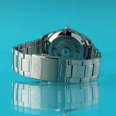 Diese Orient Uhr hat ein Edelstahl Gehäuse mit einem Durchmesser von 38.5 mm und ist mit einem Armband aus Edelstahl versehen. In der Uhr arbeitet ein Orient Uhrwerk. Das Glas der Uhr besteht aus Sapphir - Glas.