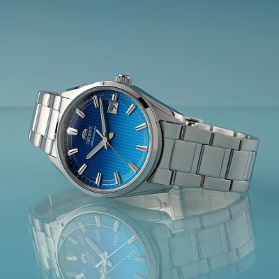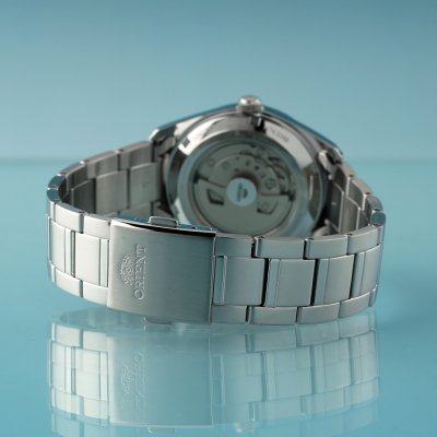 Diese Orient Uhr hat ein Edelstahl Gehäuse mit einem Durchmesser von 38.5 mm und ist mit einem Armband aus Edelstahl versehen. In der Uhr arbeitet ein Orient Uhrwerk. Das Glas der Uhr besteht aus Sapphir - Glas.