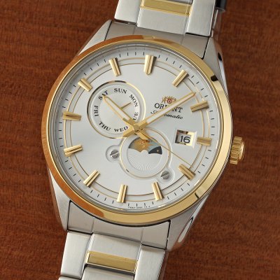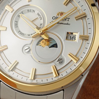 Diese Orient Uhr hat ein Edelstahl Gehäuse mit einem Durchmesser von 41 mm und ist mit einem Armband aus Edelstahl versehen. In der Uhr arbeitet ein Epson Uhrwerk. Das Glas der Uhr besteht aus Sapphir - Glas.
